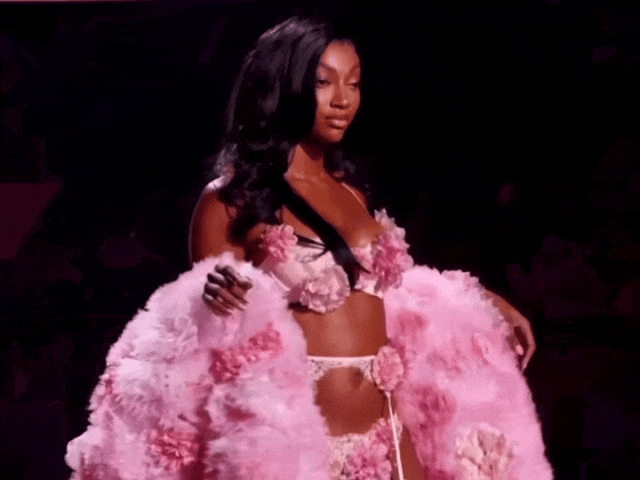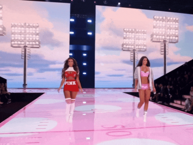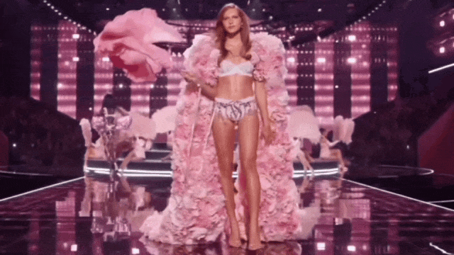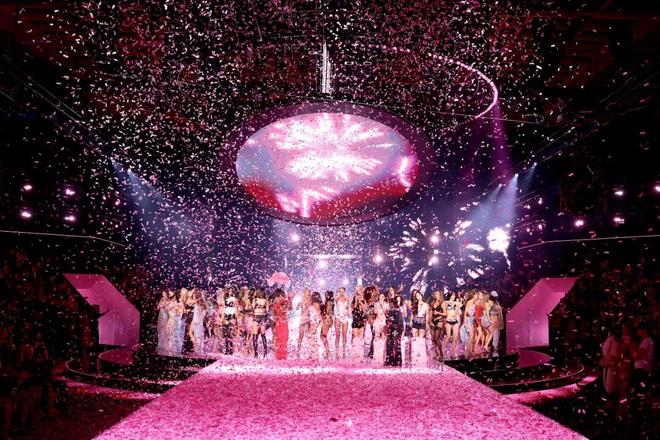 虽然这两年全世界经济都不咋景气,但今年的维密秀真的有种经济上行时期的美,很多地方都看得出燃烧的预算。尤其是秀的第二部分Bombshell(绝色登场),整个T台都笼罩着梦幻的粉红色柔光。
