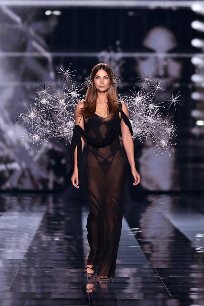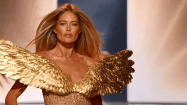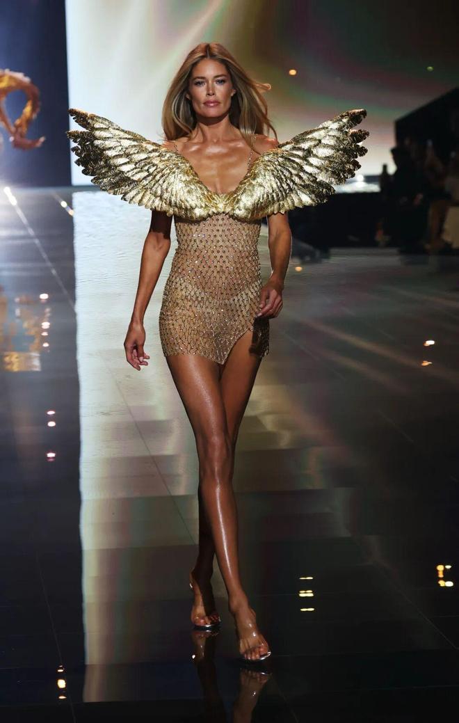 这个造型几乎成了“维密黄金时代”的象征之一:性感、力量、奢华,全都浓缩在她张开双臂的那一刻。