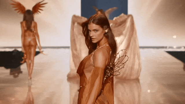 这部分的造型,也代表着最经典的维密风格。柔光缎面、轻盈羽毛和闪烁钻片构建出一间梦幻的闺房,甜美、俏皮,却又隐隐带着挑逗的气息,仿佛连空气里都能闻到甜味。