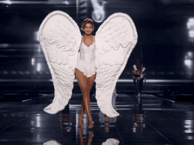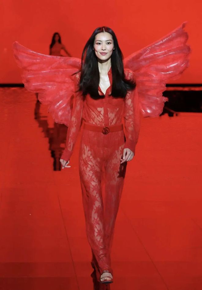 刘雯出来的时候,我一直在大声尖叫,因为每次看到她我都觉得很自豪。她穿着非常适合自己风格的蕾丝睡衣,背上有像模像样的翅膀。今天感觉她的心情和步伐都非常轻松~