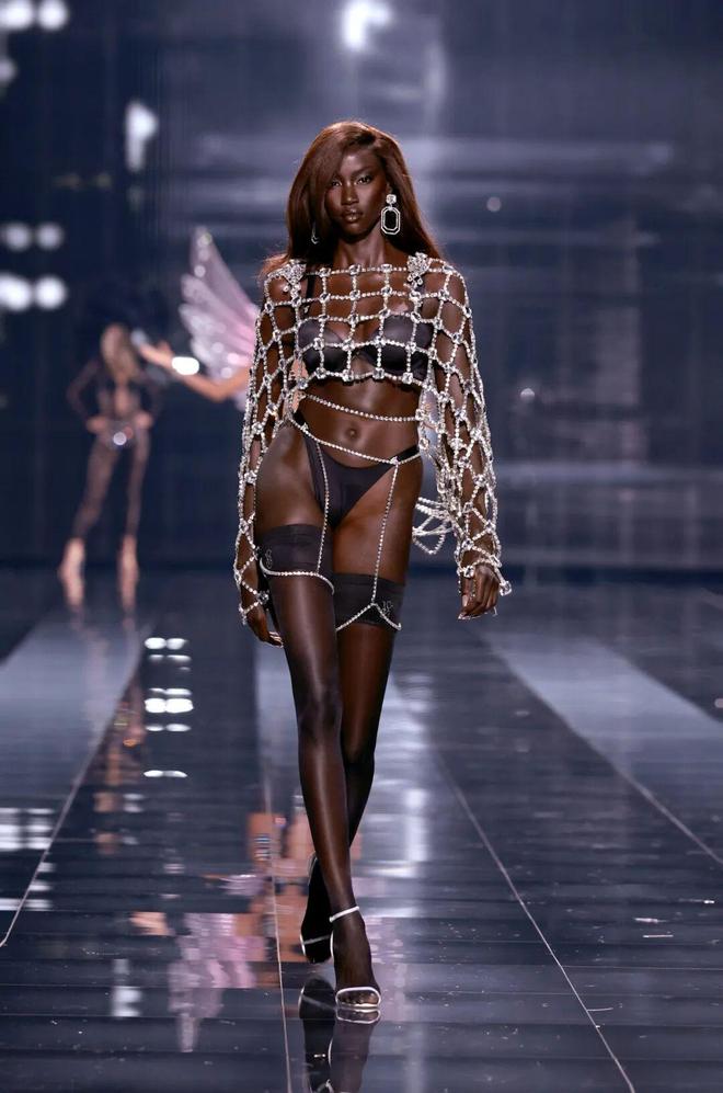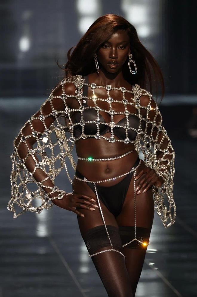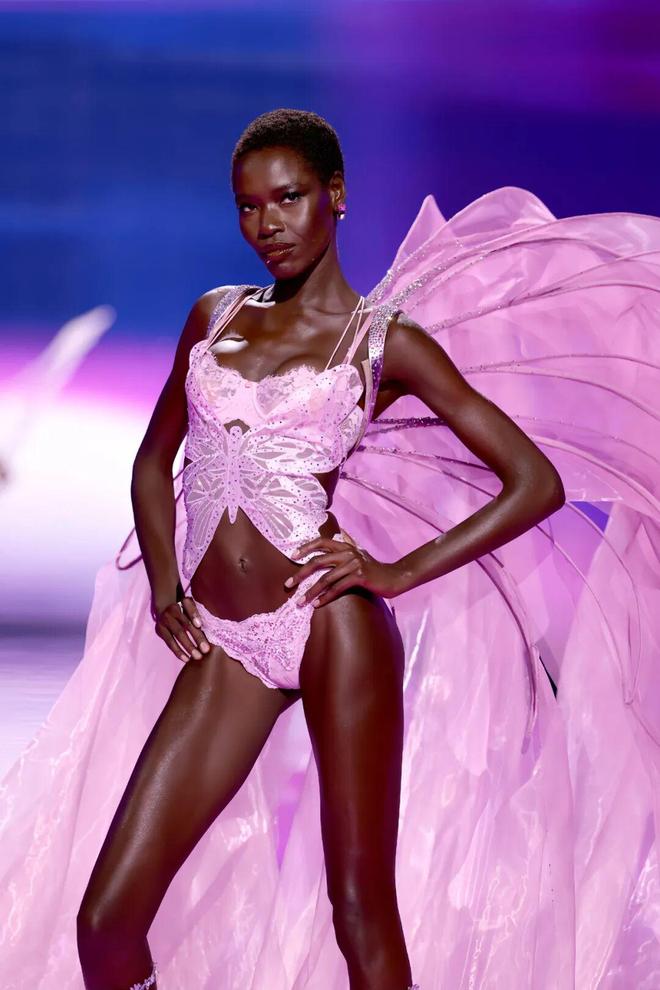 黑珍珠Anok Yai也美得吓我一大跳。她其实算是维密舞台上的新面孔,2024年才第一次出现在维密的舞台上,