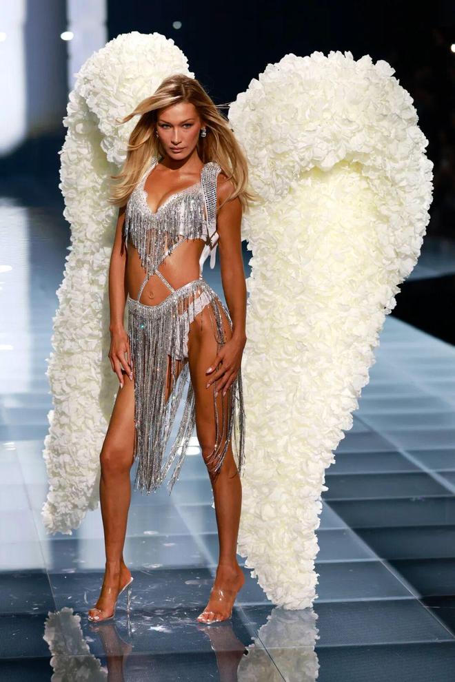 这是Bella Hadid第五次登上维密秀舞台。这次回归,对她来说也意义非凡,因为就在不久她还因莱姆病复发而卧病在床。虽然离她自己的最佳状态还有距离,但她今天的表现已经足够出彩了。