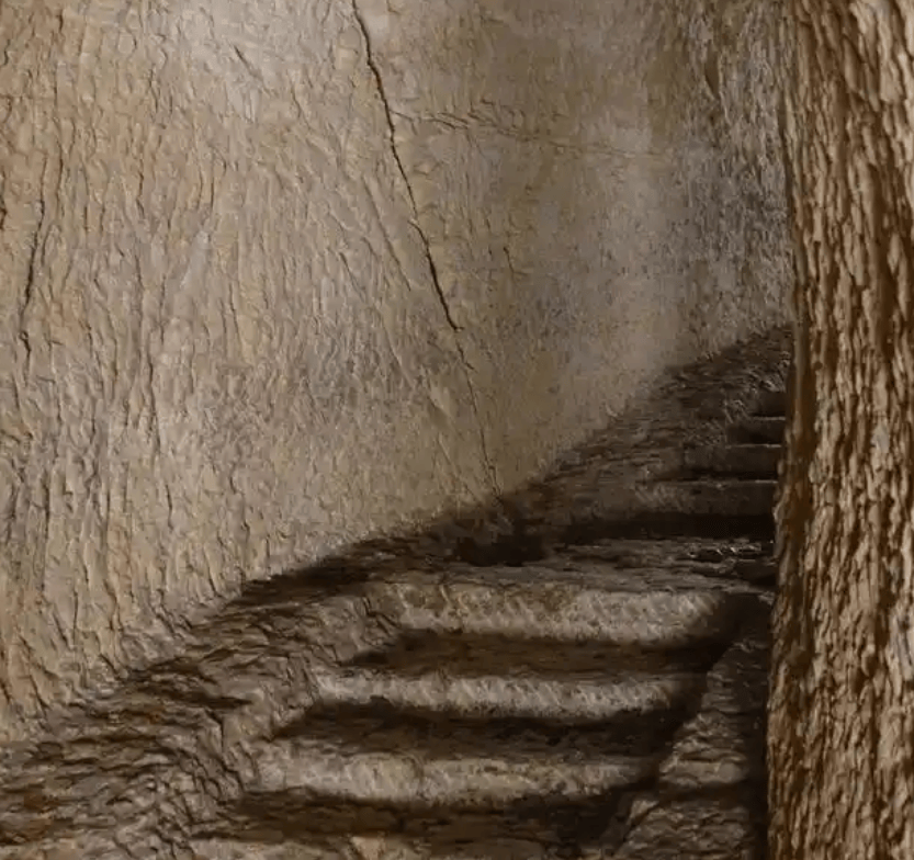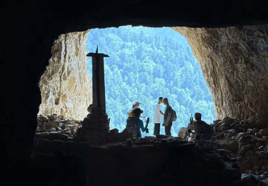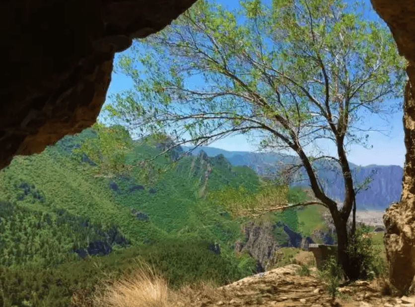 沿峭壁穿过人工开凿的10余米长的山洞是精致的眼光楼,小巧玲珑。楼后有碑厅,厅内存放着清朝十八堂最鼎盛时期重修庙堂及布施和各地游客游记碑文大小十五块,现保存基本完好。石洞山水峪峡谷,谷深壁陡,夏季溪流瀑布;高山草甸松林,回望小天山方向,远山风车、草甸连绵,拍照极美。